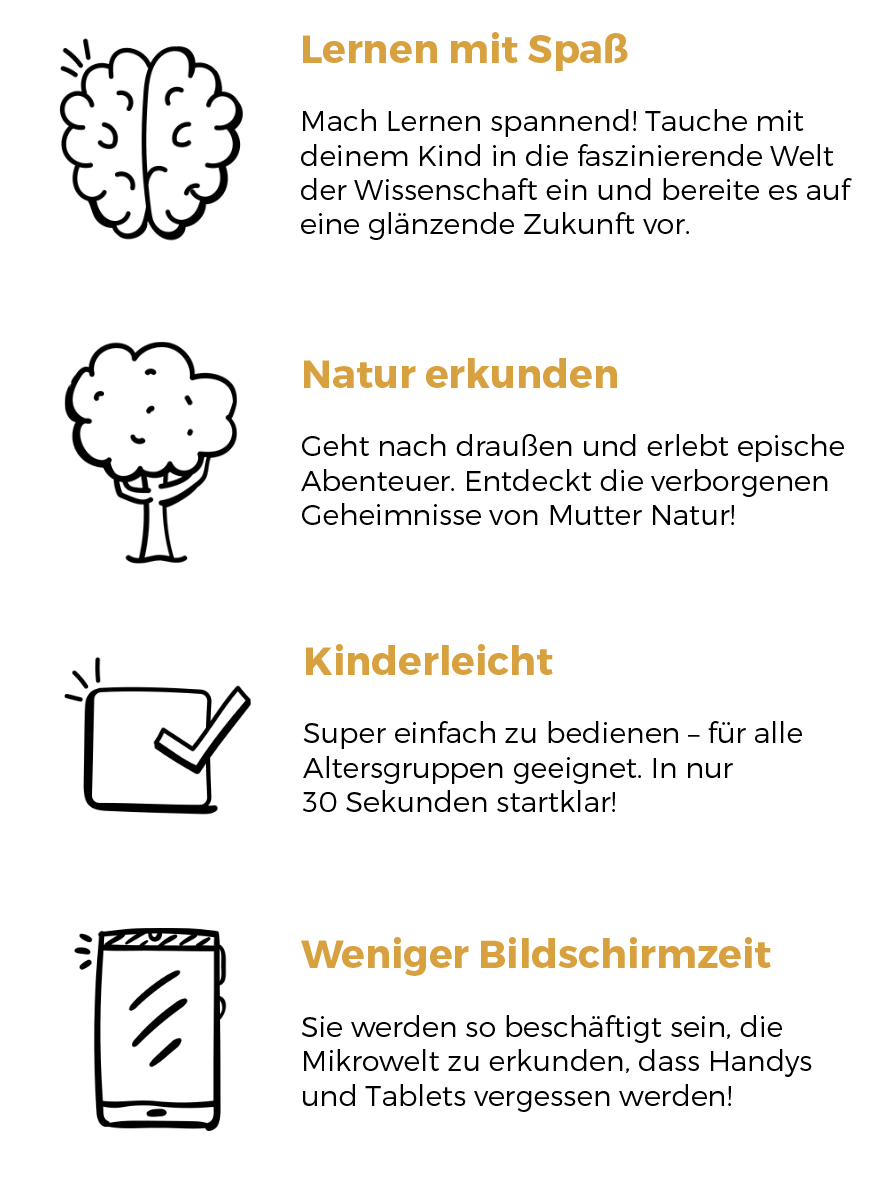 Meine Jungs lieben es, die kleinen Dinge in der Natur zu entdecken, und nutzen das Mikroskop täglich. Besonders beeindruckend ist, wie klar man damit z.B. die Blattadern sehen kann. Die Natur aus nächster Nähe zu beobachten, macht unglaublich viel Spaß und ist gleichzeitig lehrreich- Tolles Geschenk